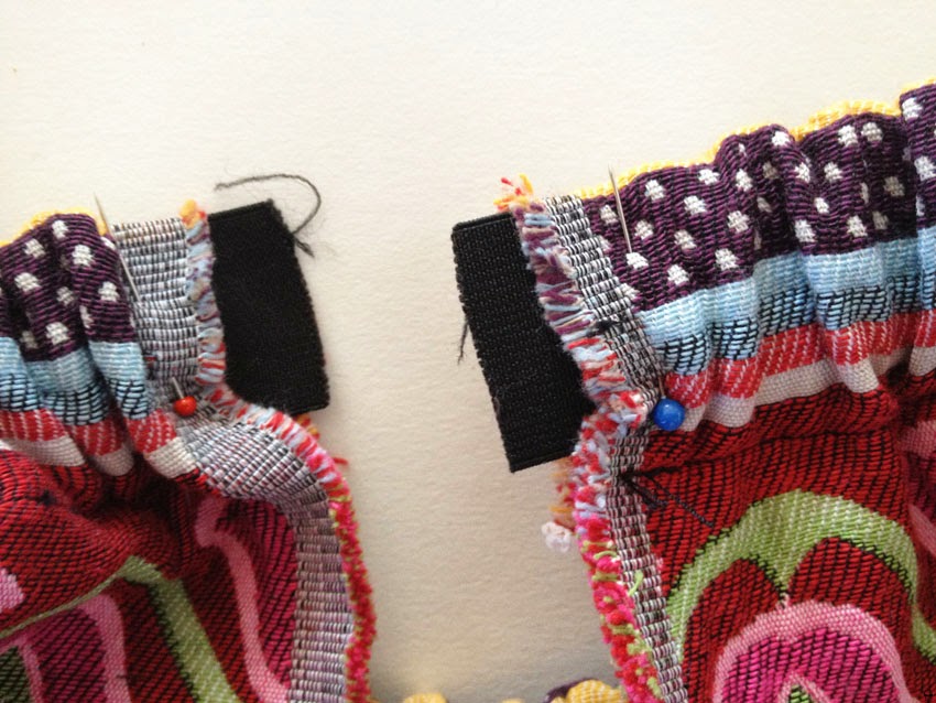 * Fold on themselves to the inside each fabric ends that meet on the rubber band area and sew them side by side on the rubber band.